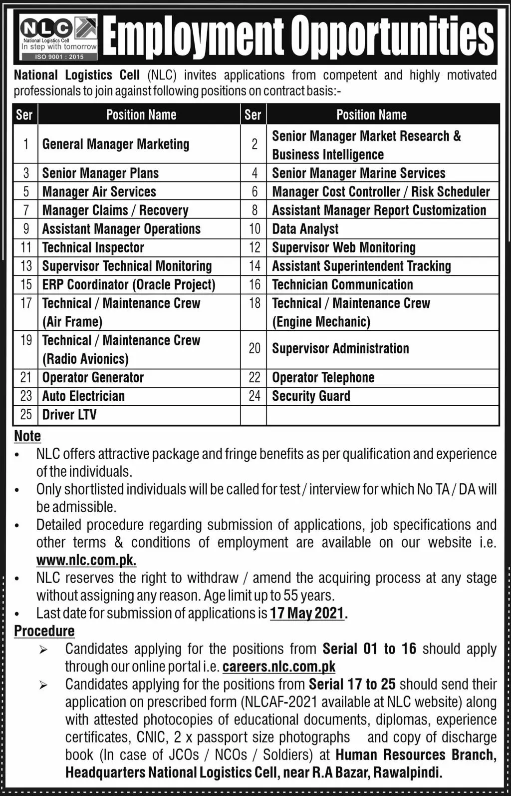 National Logistic Cell NLC Jobs 2021 announce the career opportunities for the post of in for the fresh and experienced candidates on basis who have degree. Posted date of this post is 02/05/2021 and the last date is 17/05/2021. if you are eligible for this job apply before due date.