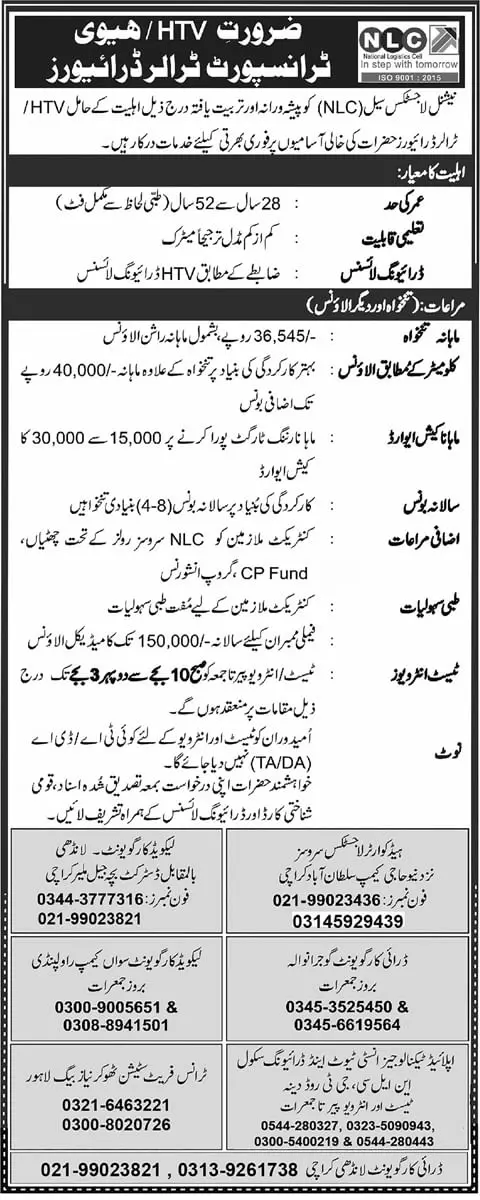 - Apply at National Logistics Cell NLC latest Government jobs in Driving and departments before closing date which is around June 3, 2023 or as per closing date in newspaper ad.