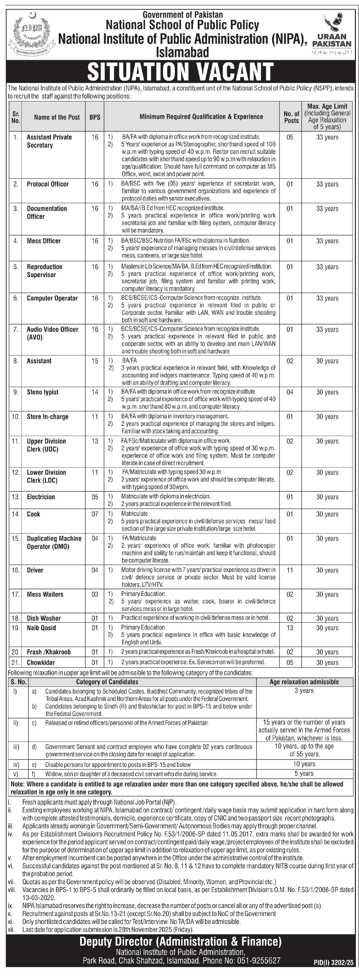 National School Of Public Policy NSPP Islamabad Jobs 2025 announce the Contract career opportunities for the post of See Below Ad in Federal, Islamabad for the fresh and experienced candidates on Contract basis who have Check Advertisement degree. Posted date of this post is 19/10/2025 and the last date is 28/10/2025. if you are eligible for this job apply before due date.