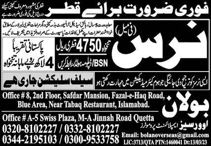 Nurse Jobs Open in Qatar 2023 announce the Contract career opportunities for the post of See Below Ad in Qatar for the fresh and experienced candidates on Contract basis who have Check Advertisement degree. Posted date of this post is 24/03/2023 and the last date is 31/03/2023. if you are eligible for this job apply before due date.