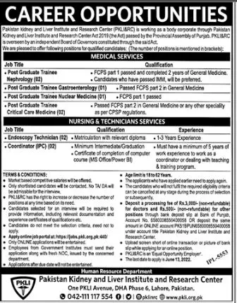 Pakistan Kidney and Liver Institute and Research Center Jobs announce the Contract career opportunities for the post of See Below Ad in Punjab, Lahore for the fresh and experienced candidates on Contract basis who have Check Advertisement degree. Posted date of this post is 29/05/2022 and the last date is 13/06/2022. if you are eligible for this job apply before due date.