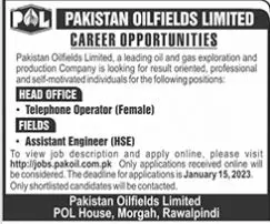 Pakistan oilfields Limited Rawalpindi Jobs 2023 announce the Contract career opportunities for the post of See Below Ad in Punjab, Rawalpindi for the fresh and experienced candidates on Contract basis who have Check Advertisement degree. Posted date of this post is 08/01/2023 and the last date is 15/01/2023. if you are eligible for this job apply before due date.