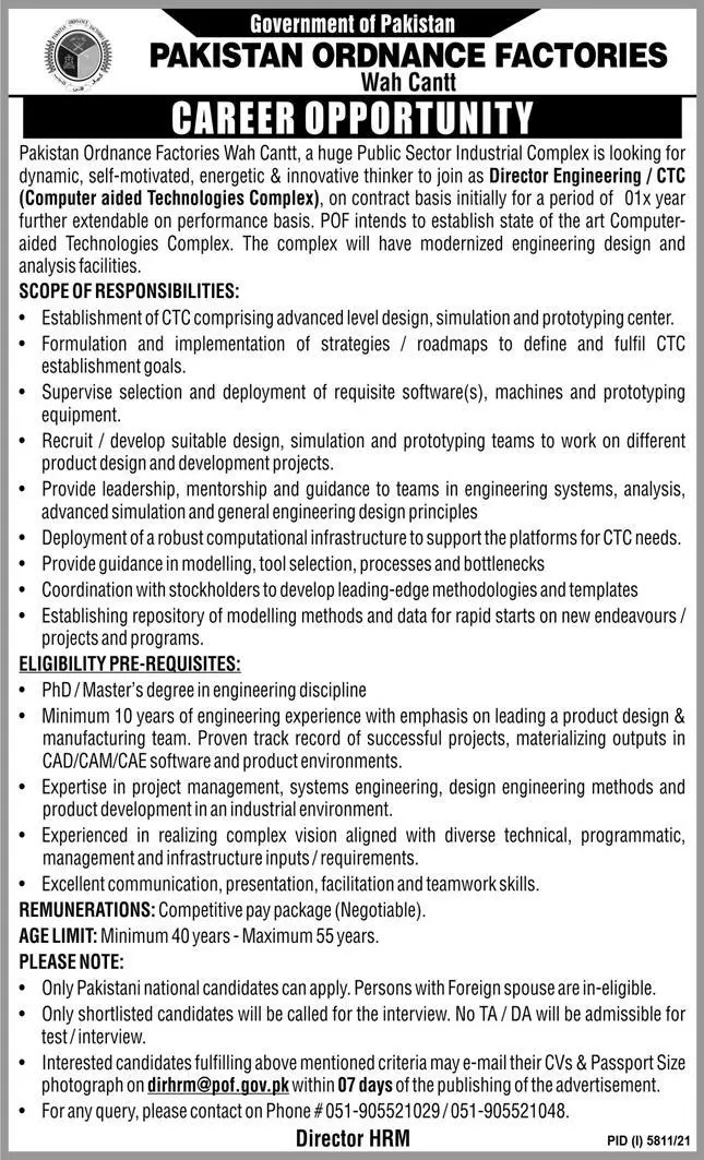 PakIstan ordnance Factory wah cantt JOBS announce the Contract career opportunities for the post of See Below Ad in Pakistan for the fresh and experienced candidates on Contract basis who have Check Advertisement degree. Posted date of this post is 27/02/2022 and the last date is 27/02/2022. if you are eligible for this job apply before due date.