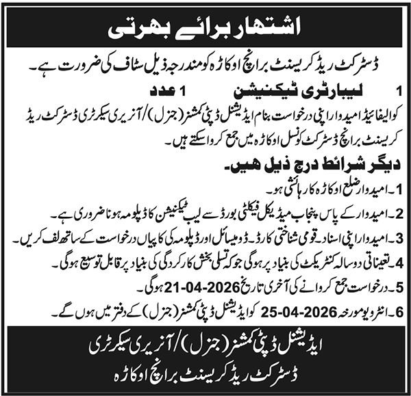 Pakistan Red Crecent Society Okara Job 2026 announce the Contract career opportunities for the post of See Below Ad in Punjab, Okara for the fresh and experienced candidates on Contract basis who have Check Advertisement degree. Posted date of this post is 16/04/2026 and the last date is 25/04/2026. if you are eligible for this job apply before due date.
