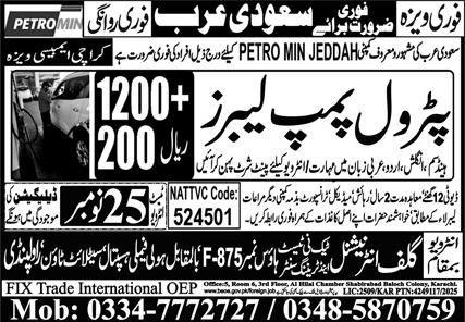 Petrol Pump Labor Jobs 2025 In Saudi Arabia announce the Contract career opportunities for the post of See Below Ad in Saudi Arabia for the fresh and experienced candidates on Contract basis who have Check Advertisement degree. Posted date of this post is 22/11/2025 and the last date is 25/11/2025. if you are eligible for this job apply before due date.