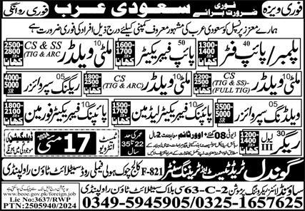 Pipe Fabricator & Racking Supervisor Jobs 2024 announce the Contract career opportunities for the post of See Below Ad in Saudi Arabia for the fresh and experienced candidates on Contract basis who have Check Advertisement degree. Posted date of this post is 14/05/2024 and the last date is 17/05/2024. if you are eligible for this job apply before due date.