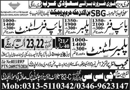 Pipe Fitter And Plumber Assistant Jobs in Saudia Arabia announce the Contract career opportunities for the post of See Below Ad in Saudi Arabia for the fresh and experienced candidates on Contract basis who have Check Advertisement degree. Posted date of this post is 19/08/2024 and the last date is 23/08/2024. if you are eligible for this job apply before due date.