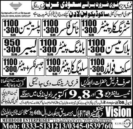 Plaster Mason & Block Mason Jobs 2025 In Saudi Arabia announce the Contract career opportunities for the post of See Below Ad in Saudi Arabia for the fresh and experienced candidates on Contract basis who have Check Advertisement degree. Posted date of this post is 26/09/2025 and the last date is 09/10/2025. if you are eligible for this job apply before due date.