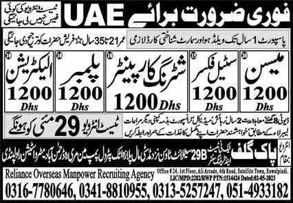 Plumber & Electrician Jobs 2023 In UAE 2023 announce the Contract career opportunities for the post of See Below Ad in United Arab Emirates for the fresh and experienced candidates on Contract basis who have Check Advertisement degree. Posted date of this post is 27/05/2023 and the last date is 29/05/2023. if you are eligible for this job apply before due date.