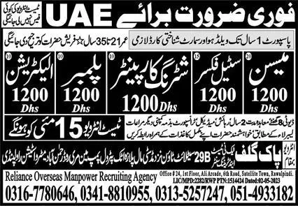 Plumber & Shuttering Carpenter Jobs 2023 In UAE announce the Contract career opportunities for the post of See Below Ad in United Arab Emirates for the fresh and experienced candidates on Contract basis who have Check Advertisement degree. Posted date of this post is 11/05/2023 and the last date is 15/05/2023. if you are eligible for this job apply before due date.