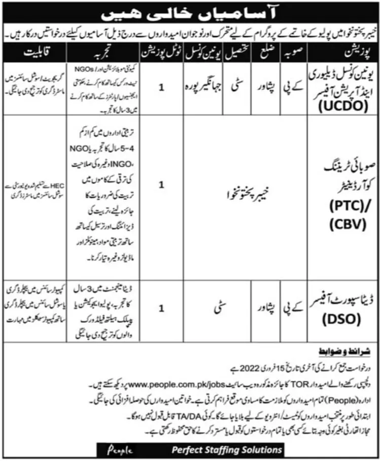 Polio Eradication Program Khyber Pakhtunkhwa JOBS announce the Permanent career opportunities for the post of See Below Ad in Khyber Pakhtunkhwa for the fresh and experienced candidates on Permanent basis who have Check Advertisement degree. Posted date of this post is 12/02/2022 and the last date is 15/02/2022. if you are eligible for this job apply before due date.