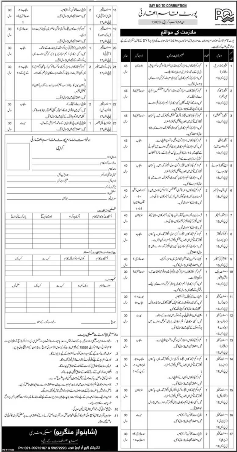 Port Qasim Authority PQA Karachi Jobs 2025 announce the Contract career opportunities for the post of See Below Ad in Sindh, Karachi for the fresh and experienced candidates on Contract basis who have Check Advertisement degree. Posted date of this post is 26/10/2025 and the last date is 10/11/2025. if you are eligible for this job apply before due date.