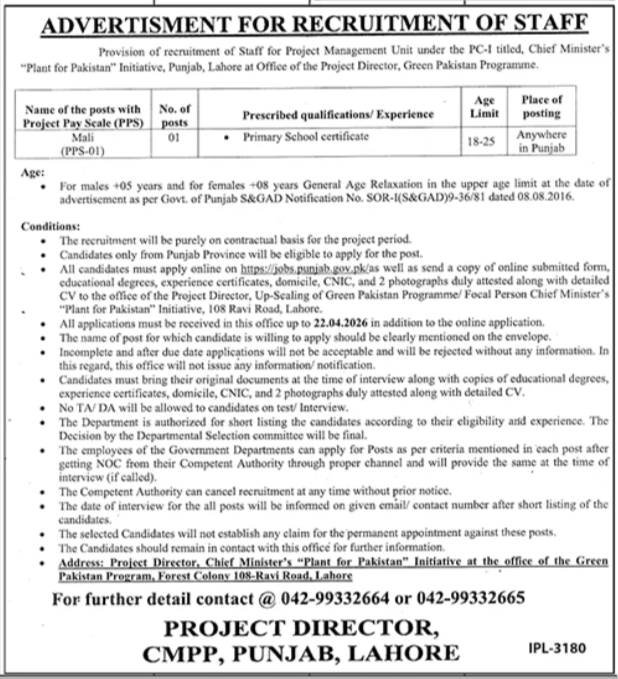 Project Management Unit Lahore Job 2026 announce the Contract career opportunities for the post of See Below Ad in Punjab, Lahore for the fresh and experienced candidates on Contract basis who have Check Advertisement degree. Posted date of this post is 02/04/2026 and the last date is 22/04/2026. if you are eligible for this job apply before due date.