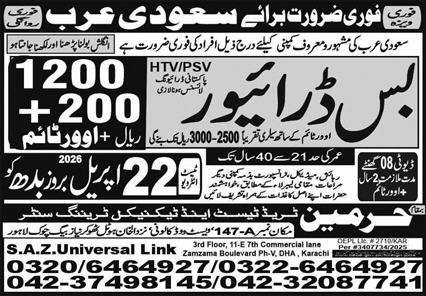 PSV Driver & Bus Driver Jobs 2026 In Saudi Arabia announce the Contract career opportunities for the post of See Below Ad in Saudi Arabia for the fresh and experienced candidates on Contract basis who have Check Advertisement degree. Posted date of this post is 21/04/2026 and the last date is 22/04/2026. if you are eligible for this job apply before due date.