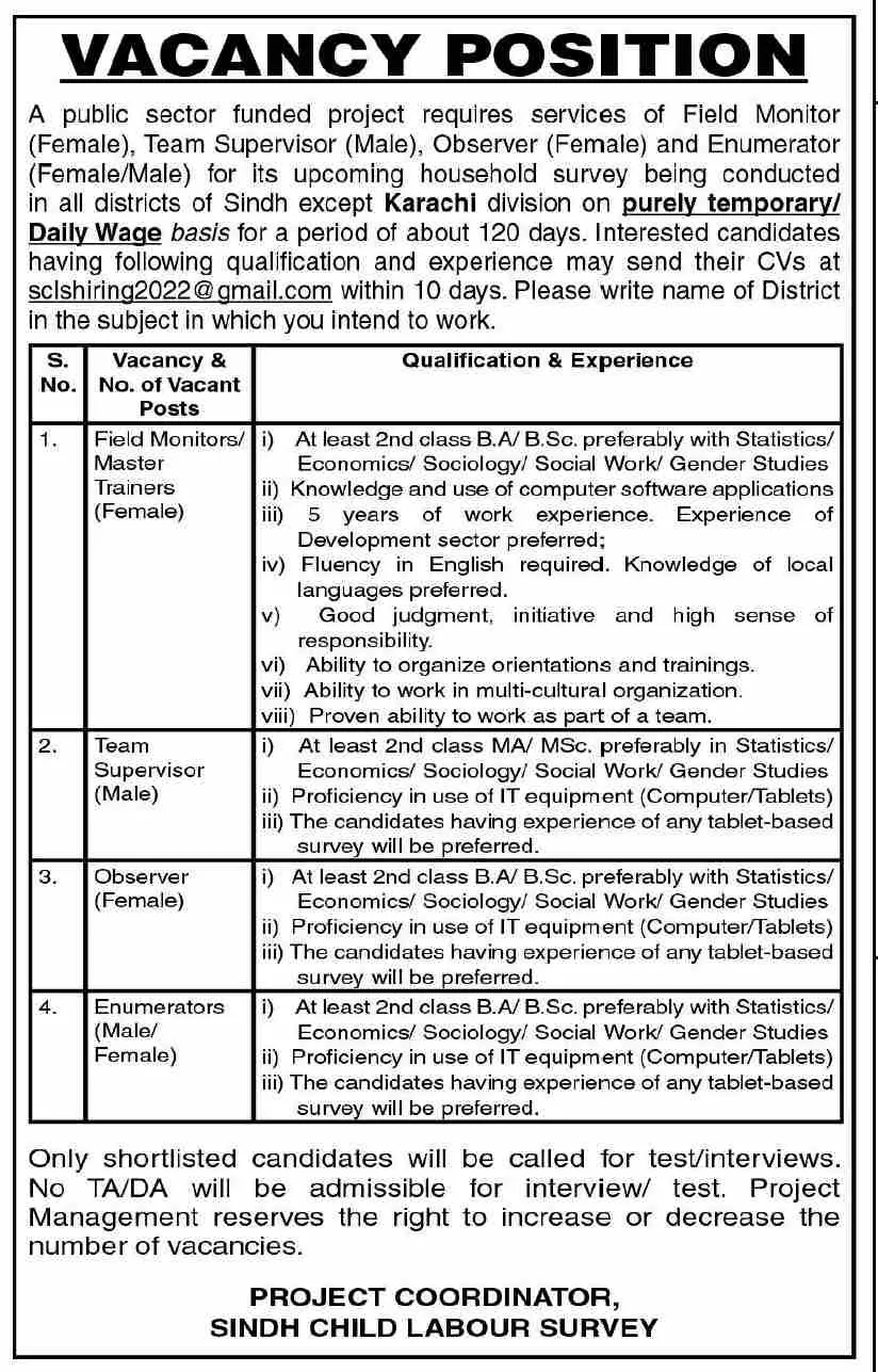 - PROJECT COORDINATOR, SINDH CHILD LABOUR SURVEY