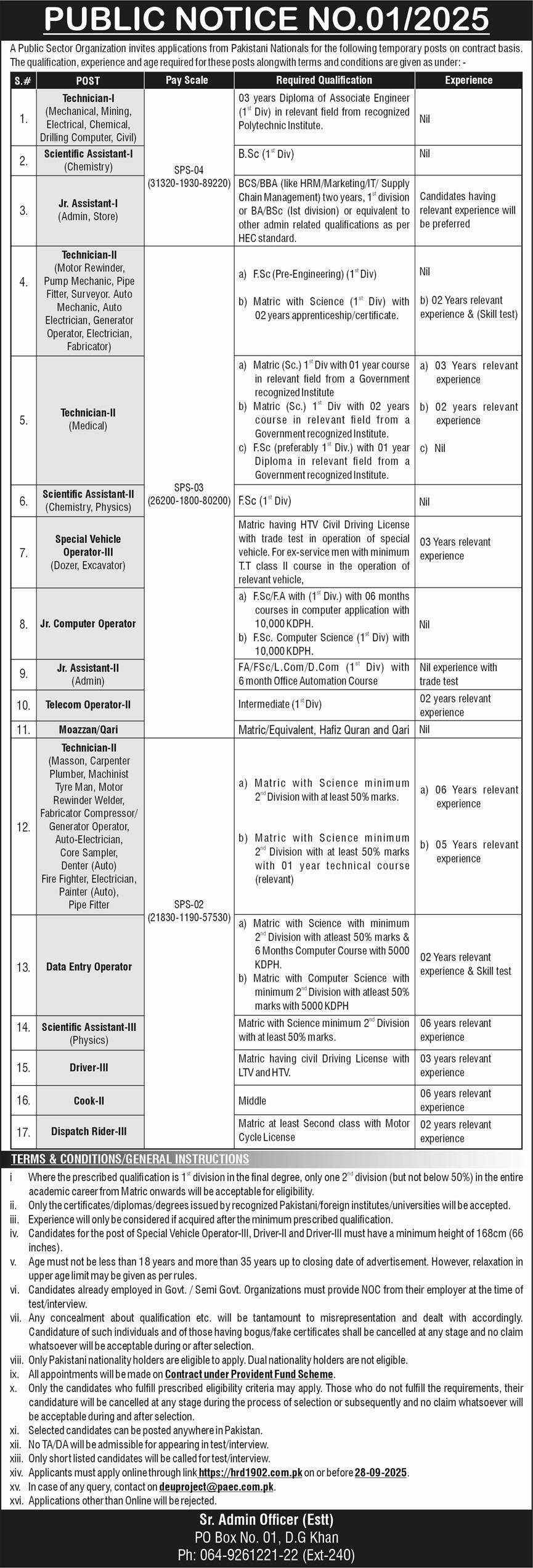 Public Sector Organization Dera Ghazi Khan Jobs 2025 announce the Contract career opportunities for the post of See Below Ad in Punjab, Dera Ghazi Khan for the fresh and experienced candidates on Contract basis who have Check Advertisement degree. Posted date of this post is 14/09/2025 and the last date is 28/09/2025. if you are eligible for this job apply before due date.