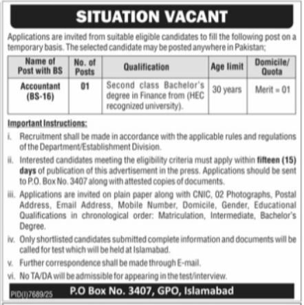 Public Sector Organization Islamabad Jobs 2026 announce the Contract career opportunities for the post of See Below Ad in Federal, Islamabad for the fresh and experienced candidates on Contract basis who have Check Advertisement degree. Posted date of this post is 20/03/2026 and the last date is 03/04/2026. if you are eligible for this job apply before due date.