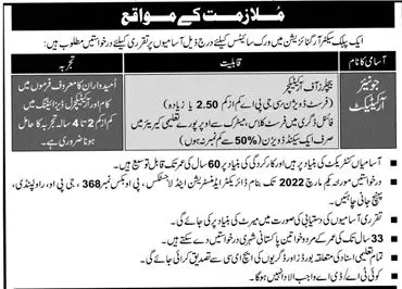 Public Sector Organization Jobs announce the Contract career opportunities for the post of See Below Ad in Rawalpindi for the fresh and experienced candidates on Contract basis who have Check Advertisement degree. Posted date of this post is 20/02/2022 and the last date is 01/03/2022. if you are eligible for this job apply before due date.