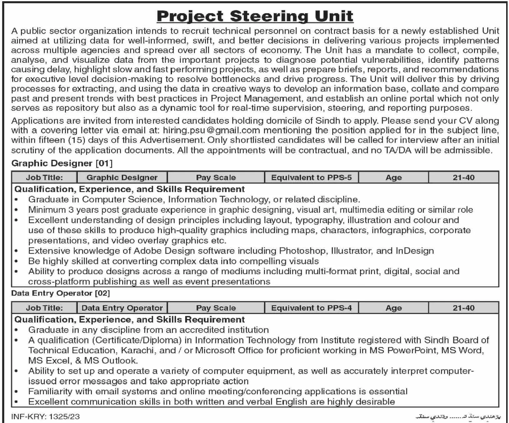 Public Sector Organization Karachi Jobs 2023 announce the Contract career opportunities for the post of See Below Ad in Sindh, Karachi for the fresh and experienced candidates on Contract basis who have Check Advertisement degree. Posted date of this post is 08/04/2023 and the last date is 23/04/2023. if you are eligible for this job apply before due date.