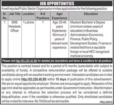 Public Sector Organization Punjab Jobs 2025 announce the Contract career opportunities for the post of See Below Ad in Punjab, Lahore for the fresh and experienced candidates on Contract basis who have Check Advertisement degree. Posted date of this post is 11/10/2025 and the last date is 26/10/2025. if you are eligible for this job apply before due date.