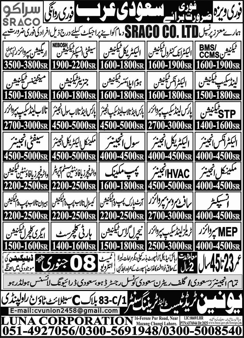 Pump Mechanic And Inpector Jobs in Saudia Arabia 2026 announce the Contract career opportunities for the post of See Below Ad in Saudi Arabia for the fresh and experienced candidates on Contract basis who have Check Advertisement degree. Posted date of this post is 01/01/2026 and the last date is 08/01/2026. if you are eligible for this job apply before due date.