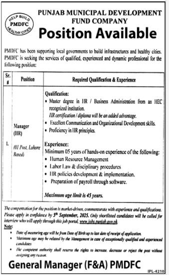Punjab Muncipal Development Fund Company Jobs 2025 announce the Contract career opportunities for the post of See Below Ad in Punjab, Lahore for the fresh and experienced candidates on Contract basis who have Check Advertisement degree. Posted date of this post is 22/08/2025 and the last date is 05/09/2025. if you are eligible for this job apply before due date.
