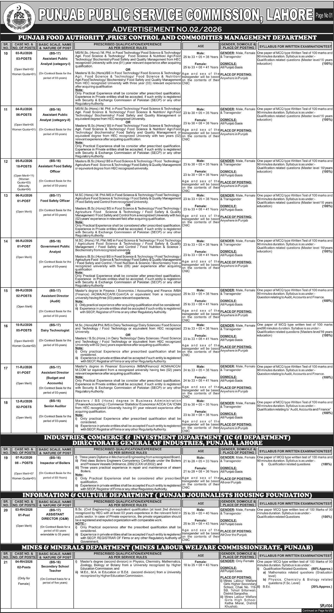 PUNJAB PUBLIC SERVICE COMMISSION, LAHORE Page No. 02