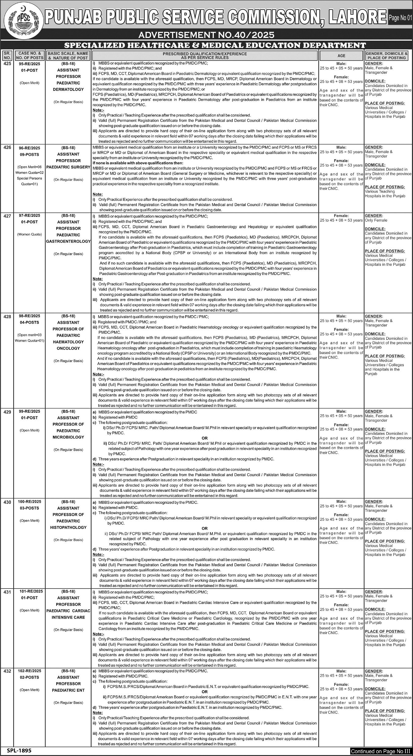 Punjab Public Service Commission PPSC Jobs 40/2025 announce the Permanent career opportunities for the post of See Below Ad in Punjab, Lahore for the fresh and experienced candidates on Permanent basis who have Check Advertisement degree. Posted date of this post is 23/10/2025 and the last date is 07/11/2025. if you are eligible for this job apply before due date.