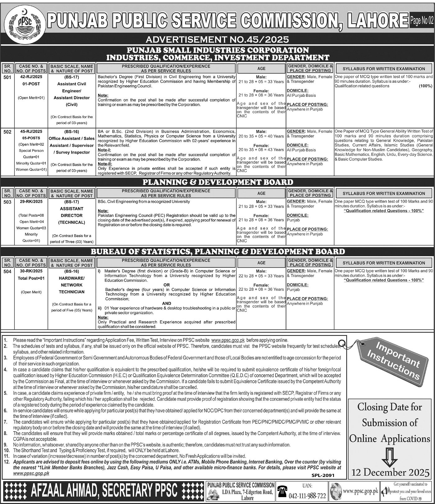 PUNJAB PUBLIC SERVICE COMMISSION, LAHORE Page No 02