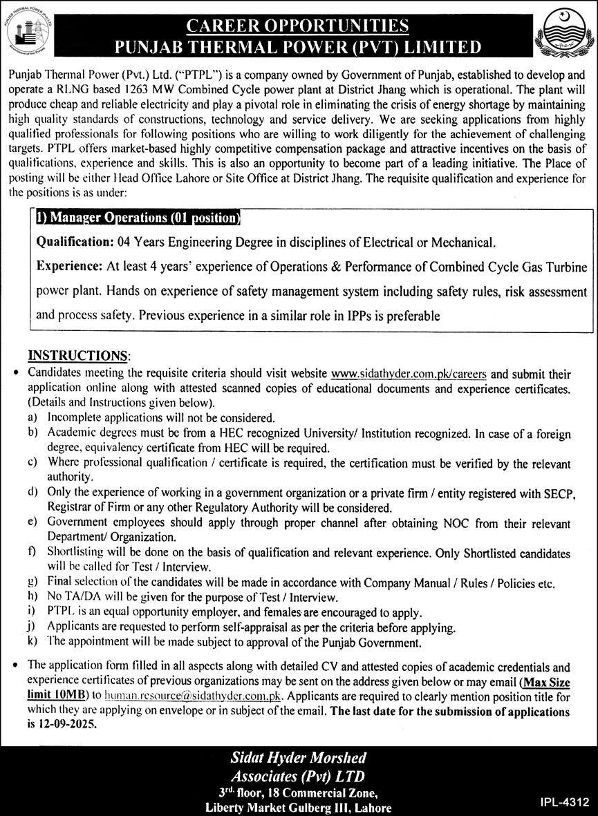 Punjab Thermal Power PTPL Lahore Jobs 2025 announce the Contract career opportunities for the post of See Below Ad in Punjab,Lahore for the fresh and experienced candidates on Contract basis who have Check Advertisement degree. Posted date of this post is 27/08/2025 and the last date is 12/09/2025. if you are eligible for this job apply before due date.