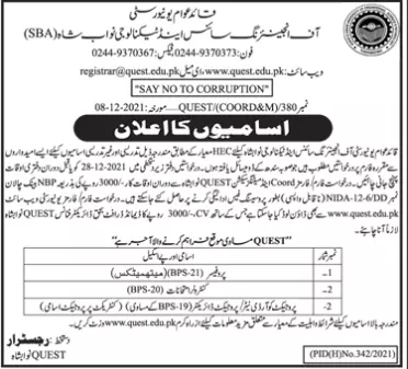 Quaid-E-Azam University of Engineering and Technology Jobs announce the Permanent career opportunities for the post of See Below Ad in Sindh for the fresh and experienced candidates on Permanent basis who have Check Advertisement degree. Posted date of this post is 10/12/2021 and the last date is 28/12/2021. if you are eligible for this job apply before due date.