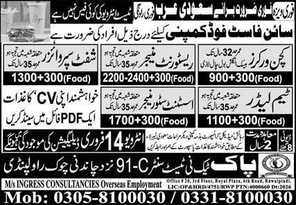 Restaurant Manager & Assistant Store Manager Jobs 2026 announce the Contract career opportunities for the post of See Below Ad in Saudi Arabia for the fresh and experienced candidates on Contract basis who have Check Advertisement degree. Posted date of this post is 13/02/2026 and the last date is 14/02/2026. if you are eligible for this job apply before due date.
