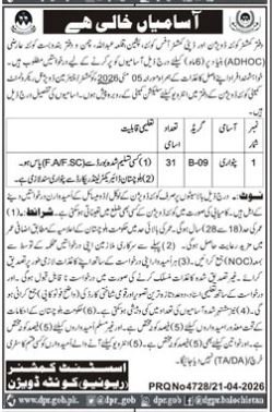 Revenue Department Balochistan Jobs 2026 announce the Contract career opportunities for the post of See Below Ad in Balochistan, Chaman, Killa Abdullah, Pishin, Quetta for the fresh and experienced candidates on Contract basis who have Check Advertisement degree. Posted date of this post is 22/04/2026 and the last date is 05/05/2026. if you are eligible for this job apply before due date.