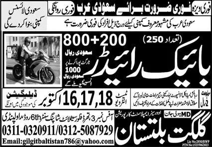 Rider & Bike Rider Jobs 2023 In Saudi Arabia announce the Contract career opportunities for the post of See Below Ad in Saudi Arabia for the fresh and experienced candidates on Contract basis who have Check Advertisement degree. Posted date of this post is 12/10/2023 and the last date is 18/10/2023. if you are eligible for this job apply before due date.