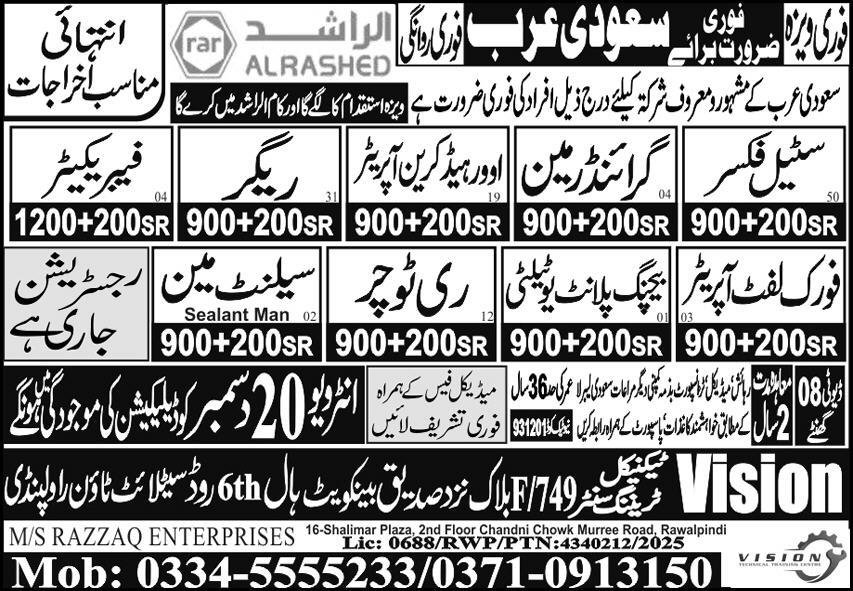 Rigger & Steel Fixer Jobs 2026 In Saudi Arabia announce the Contract career opportunities for the post of See Below Ad in Saudi Arabia for the fresh and experienced candidates on Contract basis who have Check Advertisement degree. Posted date of this post is 19/12/2025 and the last date is 20/12/2025. if you are eligible for this job apply before due date.