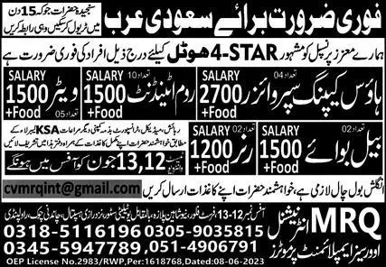 Room Attendant & Bell Boy Jobs 2023 In Saudi Arabia announce the Contract career opportunities for the post of See Below Ad in Saudi Arabia for the fresh and experienced candidates on Contract basis who have Check Advertisement degree. Posted date of this post is 10/06/2023 and the last date is 13/06/2023. if you are eligible for this job apply before due date.