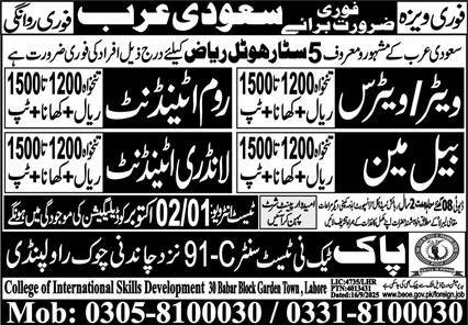 Room Attendant & Laundry Attendant Jobs 2025 announce the Contract career opportunities for the post of See Below Ad in Saudi Arabia for the fresh and experienced candidates on Contract basis who have Check Advertisement degree. Posted date of this post is 01/10/2025 and the last date is 02/10/2025. if you are eligible for this job apply before due date.