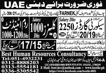 Room Attendant & Security Guard Jobs 2023 In Dubai announce the Contract career opportunities for the post of See Below Ad in Dubai for the fresh and experienced candidates on Contract basis who have Check Advertisement degree. Posted date of this post is 15/08/2023 and the last date is 17/08/2023. if you are eligible for this job apply before due date.