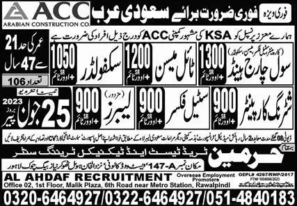 Scaffolder & Civil Chargehand Jobs 2023 In Saudi Arabia announce the Contract career opportunities for the post of See Below Ad in Saudi Arabia for the fresh and experienced candidates on Contract basis who have Check Advertisement degree. Posted date of this post is 22/06/2023 and the last date is 25/06/2023. if you are eligible for this job apply before due date.