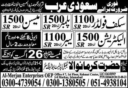 Scaffolder & Electrician Jobs 2023 In Saudi Arabia announce the Contract career opportunities for the post of See Below Ad in Saudi Arabia for the fresh and experienced candidates on Contract basis who have Check Advertisement degree. Posted date of this post is 23/08/2023 and the last date is 26/08/2023. if you are eligible for this job apply before due date.