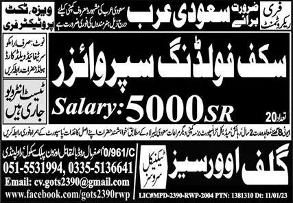 Scaffolding Supervisor Jobs 2023 in Saudi Arabia announce the Contract career opportunities for the post of See Below Ad in Saudi Arabia for the fresh and experienced candidates on Contract basis who have Check Advertisement degree. Posted date of this post is 28/02/2023 and the last date is 02/03/2023. if you are eligible for this job apply before due date.