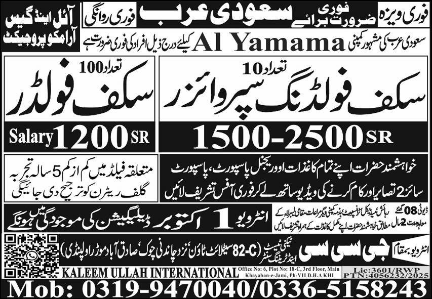 Scaffolding Supervisor & Scaffolder Jobs 2025 Saudi Arabia announce the Contract career opportunities for the post of See Below Ad in Saudi Arabia for the fresh and experienced candidates on Contract basis who have Check Advertisement degree. Posted date of this post is 27/09/2025 and the last date is 01/10/2025. if you are eligible for this job apply before due date.