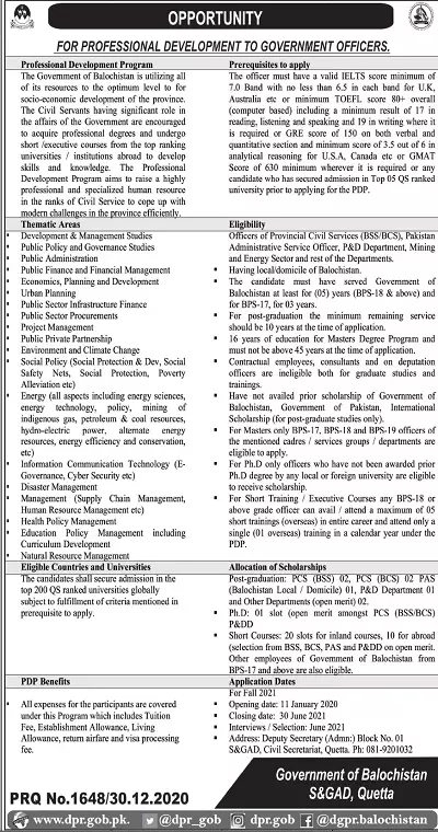 Scholarships for Govt Employees of Balochistan announce the Permanent career opportunities for the post of See Below Ad in Balochistan,Quetta for the fresh and experienced candidates on Permanent basis who have Check Advertisement degree. Posted date of this post is 01/01/2021 and the last date is 30/01/2021. if you are eligible for this job apply before due date.