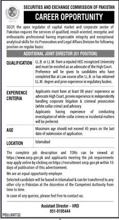 - The complete job description can be viewed at https://www.secp.gov.pk.