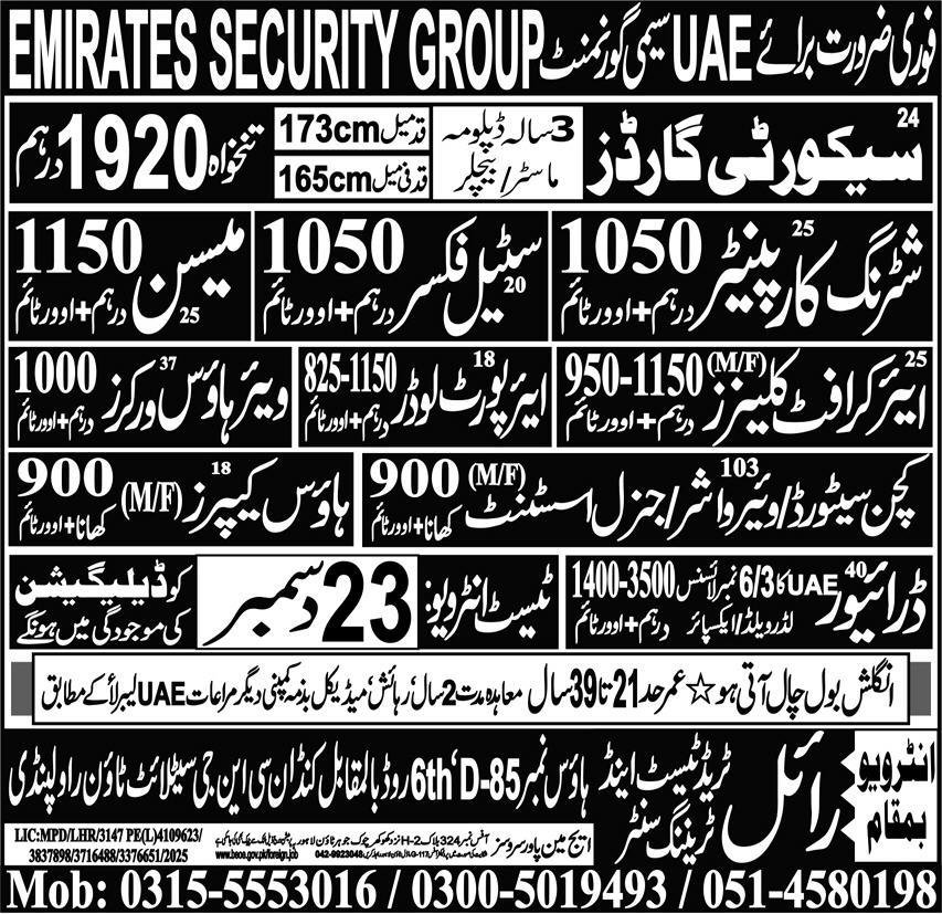 Security Guard and Steel Fixer Jobs in UAE 2025 announce the Contract career opportunities for the post of See Below Ad in United Arab Emirates for the fresh and experienced candidates on Contract basis who have Check Advertisement degree. Posted date of this post is 20/12/2025 and the last date is 23/12/2025. if you are eligible for this job apply before due date.
