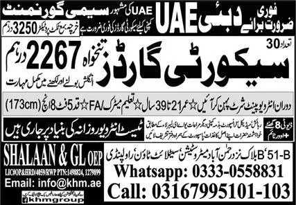 Security guard Jobs in Dubai UAE 2023 announce the Contract career opportunities for the post of See Below Ad in Dubai for the fresh and experienced candidates on Contract basis who have Check Advertisement degree. Posted date of this post is 16/09/2023 and the last date is 30/09/2023. if you are eligible for this job apply before due date.
