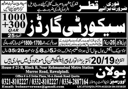 Security Guard Jobs in Qatar 2025 announce the Contract career opportunities for the post of See Below Ad in Qatar for the fresh and experienced candidates on Contract basis who have Check Advertisement degree. Posted date of this post is 19/10/2025 and the last date is 21/10/2025. if you are eligible for this job apply before due date.