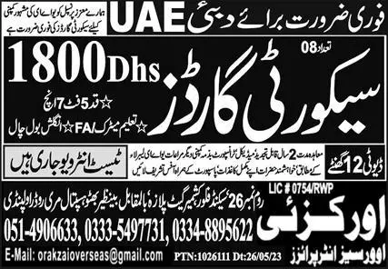 Security Guard Jobs in UAE 2023 Dubai announce the Contract career opportunities for the post of See Below Ad in United Arab Emirates for the fresh and experienced candidates on Contract basis who have Check Advertisement degree. Posted date of this post is 19/06/2023 and the last date is 30/06/2023. if you are eligible for this job apply before due date.