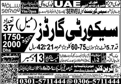 Security Guard Jobs in United Arab Emerities Uae 2025 announce the Contract career opportunities for the post of See Below Ad in United Arab Emirates for the fresh and experienced candidates on Contract basis who have Check Advertisement degree. Posted date of this post is 12/12/2025 and the last date is 13/12/2025. if you are eligible for this job apply before due date.