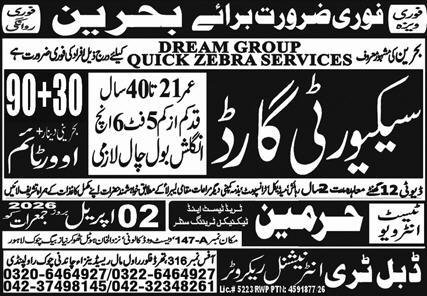 Security Guards Jobs Career Opportunity In Bahrain 2026 announce the Contract career opportunities for the post of See Below Ad in Saudi Arabia for the fresh and experienced candidates on Contract basis who have Check Advertisement degree. Posted date of this post is 01/04/2026 and the last date is 02/04/2026. if you are eligible for this job apply before due date.